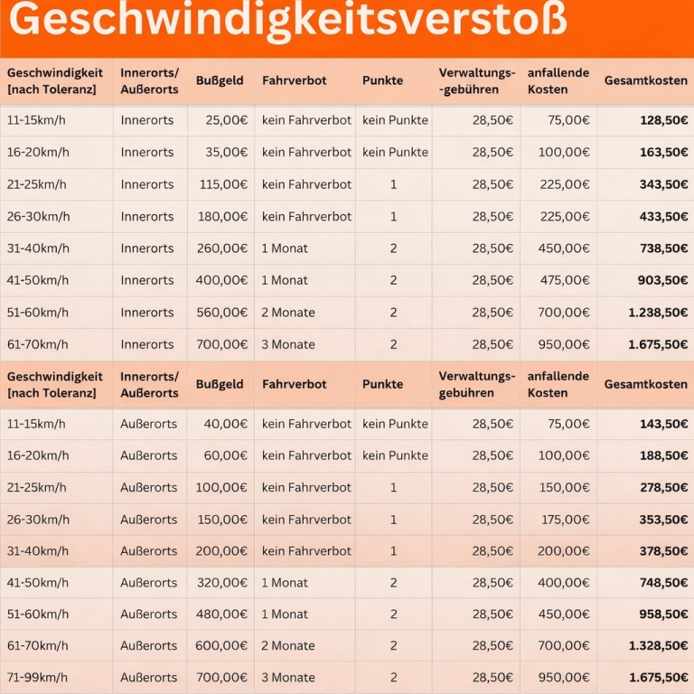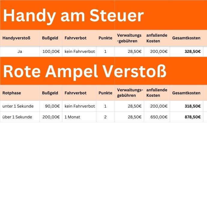 Bei einer Beauftragung entstehen lediglich die Gesamtkosten, die das Bußgeld, alle Verwaltungsgebühren sowie die Kosten für die Übernahme Ihres Verstoßes beinhalten. Es kommen keine zusätzlichen Kosten auf Sie zu. Eine Anfrage ist selbstverständlich unverbindlich. Senden Sie uns einfach Ihren Anhörungsbogen per E-Mail wir kümmern uns um den Rest!